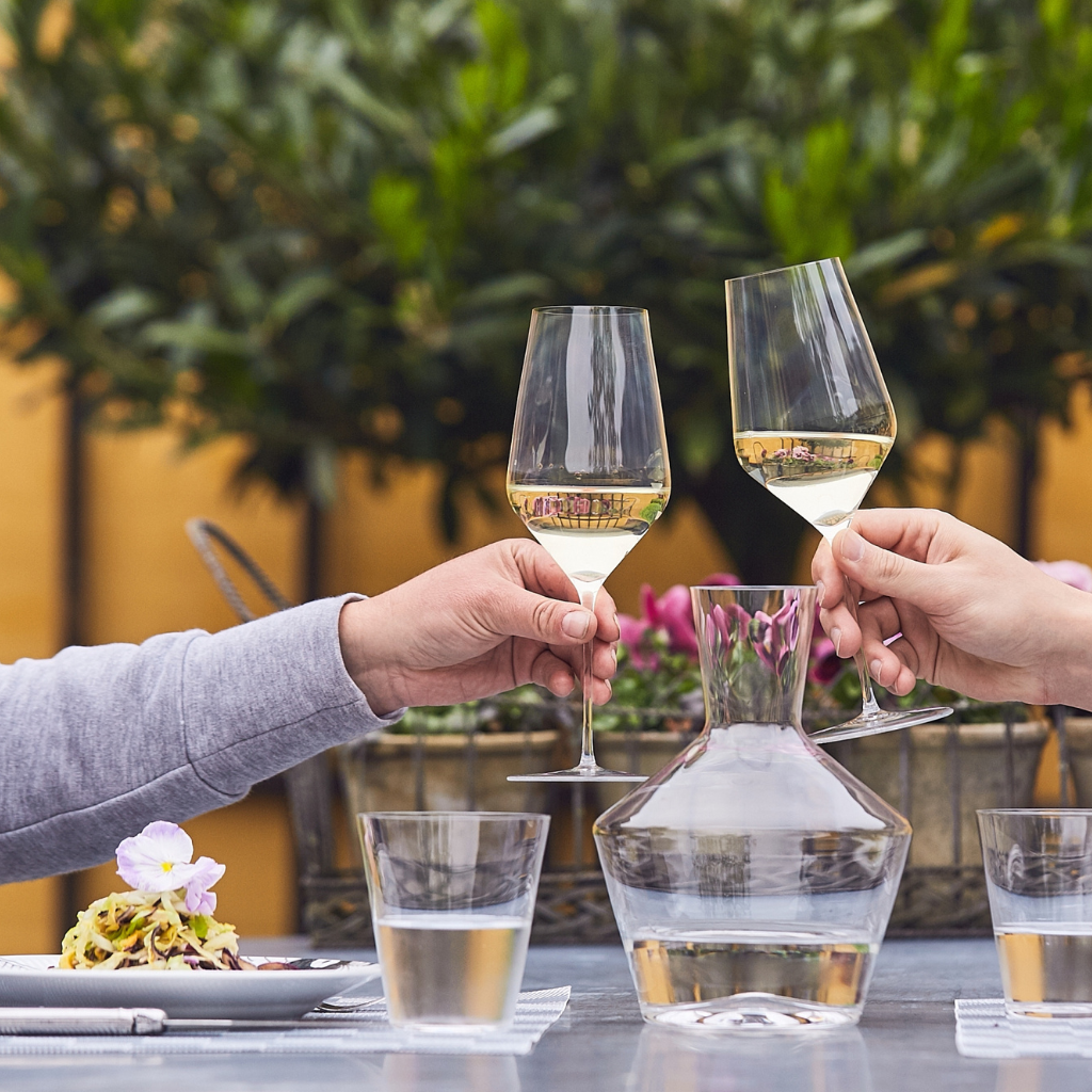 La forme unique du calice accroit la superficie occupée par le vin, ce qui permet au liquide de respirer d’avantage et de dévoiler ses notes douces et fruitées.